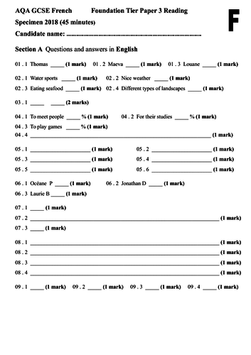 Secondly audio aqa gcse french listening test 1f specimen 2018.