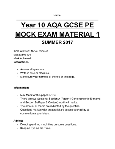 Aqa Gcse Pe Practice Papers