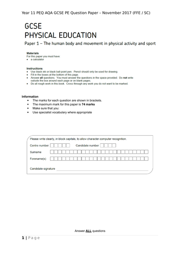 Aqa gcse pe practice papers. Paper 1 the human body and movement june 2018. Past papers of physical education 8582 are available from 2002 up to the latest session. Physical education 8582 papacambridge provides physical education 8582 gcse latest past papers and resources that includes syllabus specimens question papers marking schemes resource booklet faq s teacher s resources and a lot more.