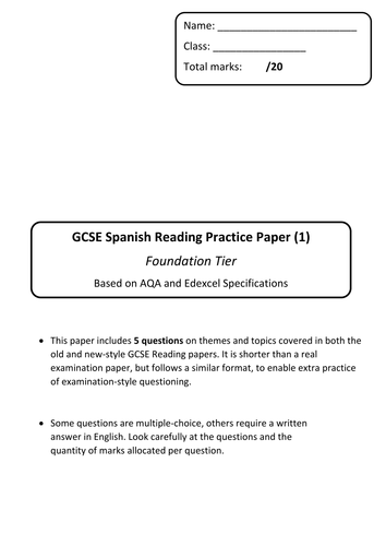 Aqa Spanish Gcse Past Papers 2017 Reading