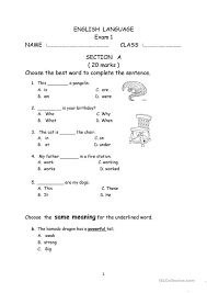 Example Of Test Paper In English