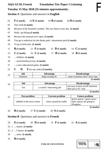 Past papers and mark schemes accompanied by a padlock are not available for students but only for teachers and exams officers of registered centres. June 2018 french gcse listening exam papers. You can download each of the aqa gcse french past papers and marking schemes by clicking the links below.