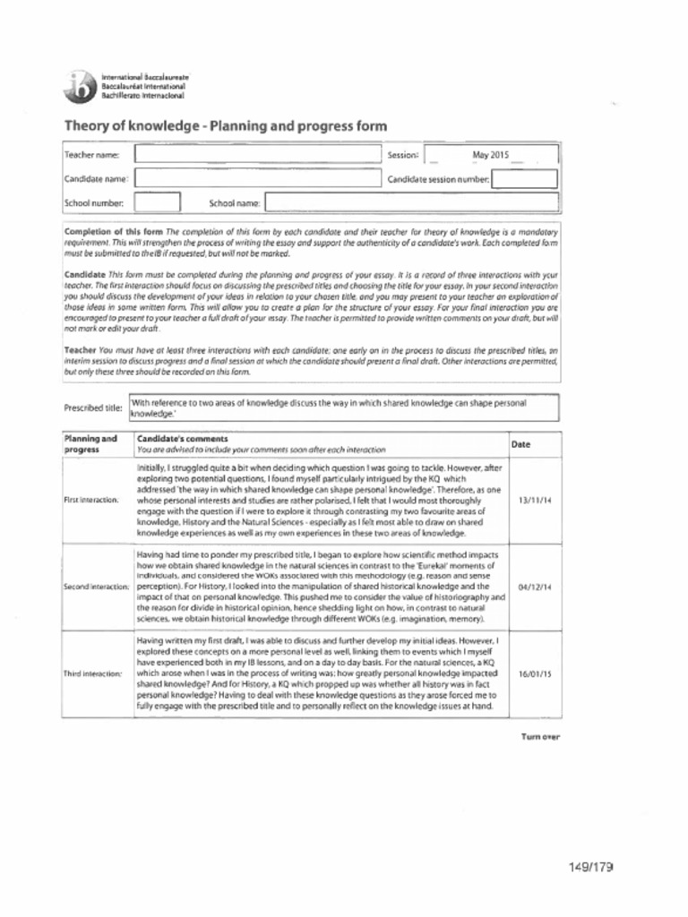 Upcoming and past questions include. The 50 theory of knowledge tok essays selected for this publication were recently submitted for the may and november 2008 and may 2009 examination sessions. This is a tok essay that i completed in my first year of ib on the topic to what extent are areas of knowledge shaped by their past.