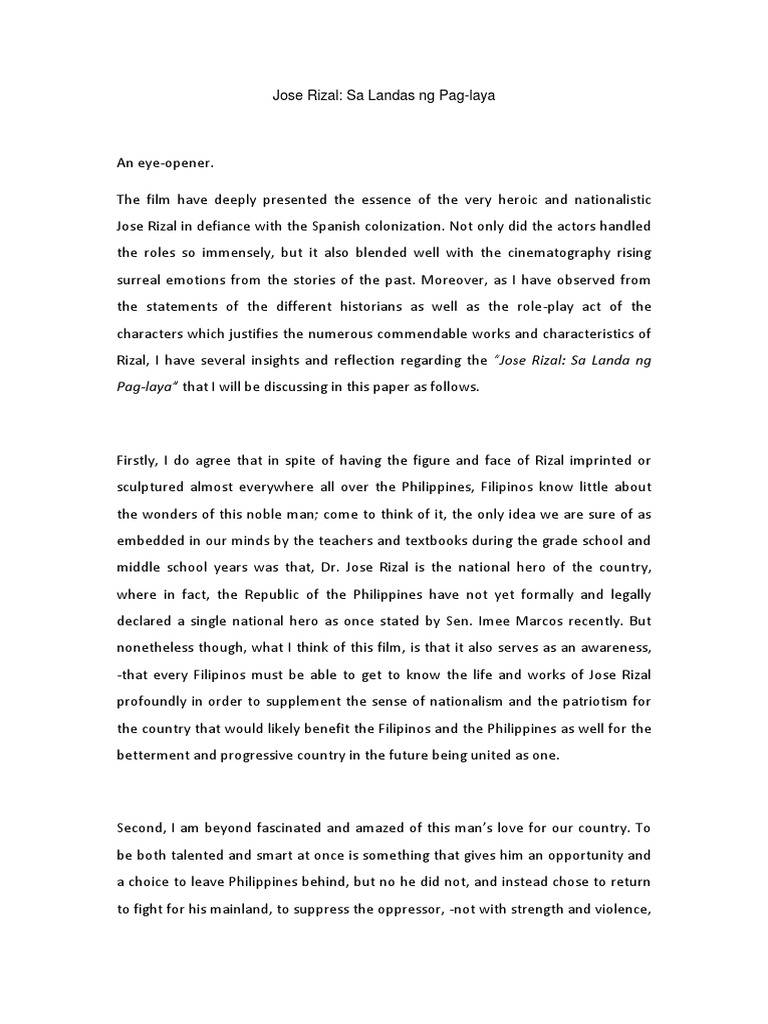 Reaction paper regarding the film jose rizal pages. The first thing i noticed in dr. This essay sample on rizal in dapitan reaction paper provides all necessary basic information on this matter including the most common for and against arguments.